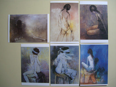 館内ショップでバラ売り販売している絵はがきの、バレリーナ作品のものを6枚組にしてあります。(ネット限定のセット販売です。)