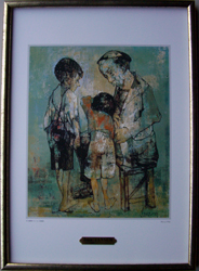 A3ポスターに直接ネームプレートを貼り、ポスター額で額装しています。