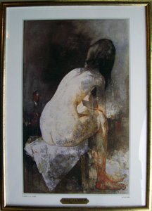 A3ポスターに直接ネームプレートを貼り、ポスター額で額装しています。