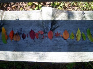 そこでまず綺麗色の落葉を、小径にある木製ベンチに集めてみました。「ウワァ?カワイイ♪」って…この際自画自賛。(ニヤリv)