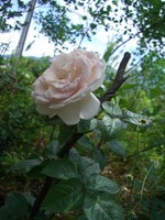 下の方がだいぶ木化しているこのつるバラは当初からあったもので『なぜここなの…?』と思わざるを得ないくらい強く逞しくけれどしなやかに、周囲の木々を押しのけて育っていました。