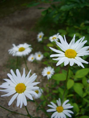 お伝えしそびれていた2011年のマーガレットたち。この写真は一昨日撮りましたがまだまだ咲いてます。(小径沿いは夜半?朝方の雨にうたれ、今朝見た時はちょっとへばり気味のようでしたが…。)かわいいなぁ…。『マダム、ご覧いただけてますか?』