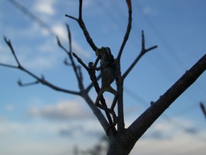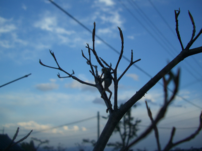 春に向けて(自宅の)植樹をしていたら百舌鳥の早贄らしき蛙ちゃんがぐさりと刺さっていました。