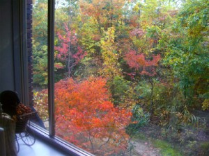朝の写真が周りの木たちの影になっていたので撮り直してみました。下の方は黄色くて上の方は赤。段階的にオレンジがあってグラデーションにもなっていて単色の頃よりもよりキレイです。でも日当たりのいいところから枯れていってしまうんですよね…。