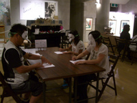 そして描き手は描き終えた印に自分のサインを入れてマスクを外し…あとは皆で大笑い!。笑い疲れたらフリードリンクを飲んでゆっくりしててください♪