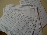 何しろ時間が無くて特急で作成したので、鑑賞の助けとか作品理解を深めるとか…固い部分ばかり目立ってしまうようなほとんど全てがテキストのガチガチなワークシートでしたが、お1人でみえた方もご家族でみえた方もそれぞれ行ったり来たりしながら真面目に取り組んでくださっていたお姿がとても印象に残りました。設問は7つのみで、それぞれの答えの中の1文字を数字の順番に繋げると1つのワード(言葉)が完成します。このワードの正解者さんには後日抽選でプレゼントをお送りしたいと思っているのですが、せっかくなのでちょっとしたアンケートも追加させていただいています。(ちゃっかりしてる?(笑!)