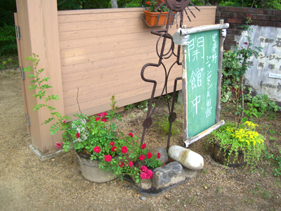 数年かけて当館の「植物ずかん」を作ってくれていた植物大好きスタッフが春を前に退職することになって…私たちは今も寂しい想いをしてます。でも彼女が前年の今頃にカフェ壁面で育つバラを挿し木で準備していた鉢がみごとな花をつけて敷地主門の脇で色鮮やかにお客様をお迎えしてくれています。この子はそもそもつるばらなので地面を這っている部分もあるのですが、いずれこの辺りで大きな役割を果たすことになるので(笑)このまま成長してもらってます。