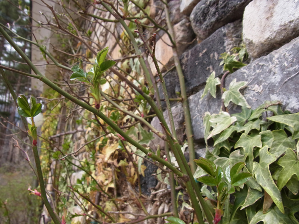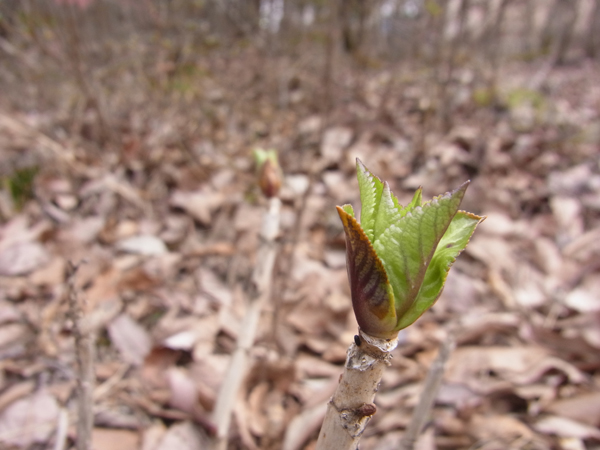 いつの間にかお庭のあちこちで樹々が芽吹き始めてます。暖かくなってきた証拠ですね!。
