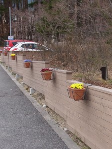 板塀に下げられたプランターのビオラたちもまた冬を越え、今こんもりと咲き誇ってキレイ。蝶も遊びに来はじめました。そして樹々の上の方では様々な野鳥が会話をしています。