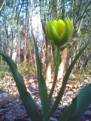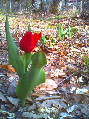 そしてチューリップ1号&2号!。赤はそばカフェ周り、黄は館への小径沿いなんですけど、この写真の花以外は『まだまだ咲いてません』のでご注意くださいね。(多分来週末くらいですかね…)