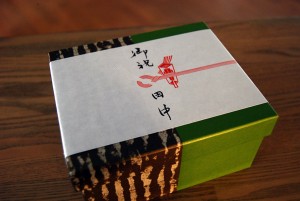いつもお見えくださる度に粋で雅なお土産をお持ちくださっている京都のご常連さまに、今日は20周年のお祝いをいただきました。そのお気持ちがもの凄く嬉しかったのは当然のこと、大変美しい和紙に包まれ、これまた和紙の貼られた化粧箱…簡易包装のこの時代にあっても、歴史と文化を損なわず守り続けておられる老舗のお店の潔さにも感動しました。