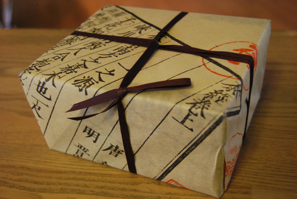 いつもお見えくださる度に粋で雅なお土産をお持ちくださっている京都のご常連さまに、今日は20周年のお祝いをいただきました。そのお気持ちがもの凄く嬉しかったのは当然のこと、大変美しい和紙に包まれ、これまた和紙の貼られた化粧箱…簡易包装のこの時代にあっても、歴史と文化を損なわず守り続けておられる老舗のお店の潔さにも感動しました。