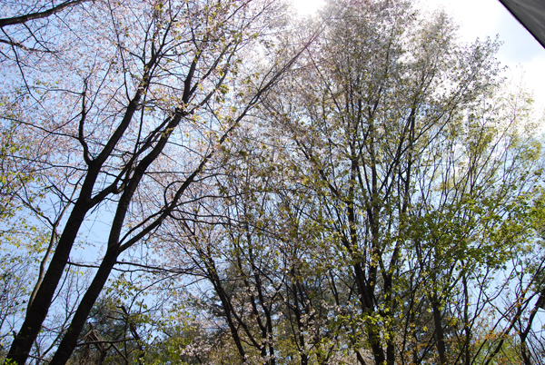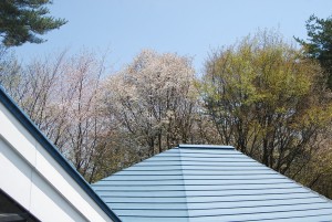 心配されていたお天気も(ちょっと肌寒い気もしますが)そこそこ。雪などは一切ありませんので安心してお出かけくださいね。山麓界隈では山桜がちょうど見頃を迎えており、当館の敷地でも南面は既に散ってしまったものの、北東にある複数本が二階の階段の踊り場から綺麗に見えています。山桜はソメイヨシノなどに比べると花が格段に小さくそれほど目立ちませんが、そのぶん可憐で爽やかな印象を受けます**。