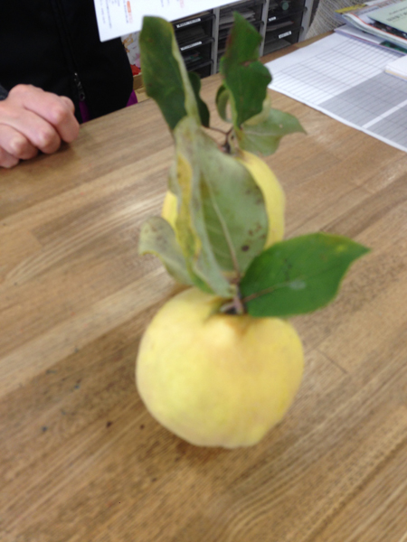 「なんですか??これ??」そこに居た女子総勢4名が《???》の顔で伺ったところ、「マルメロだよ」とのお応えが。「これがマルメロなんだ〜?!初めてみた!!」「マルメロ?カリメロ?似てない?!(笑)」一斉に騒ぎ出してしまった私たち。でもマルメロと聞いて私の頭に真っ先に浮かんだのはもちろん、ジャンセン氏の描いた《マルメロの実のある静物》でした(笑。