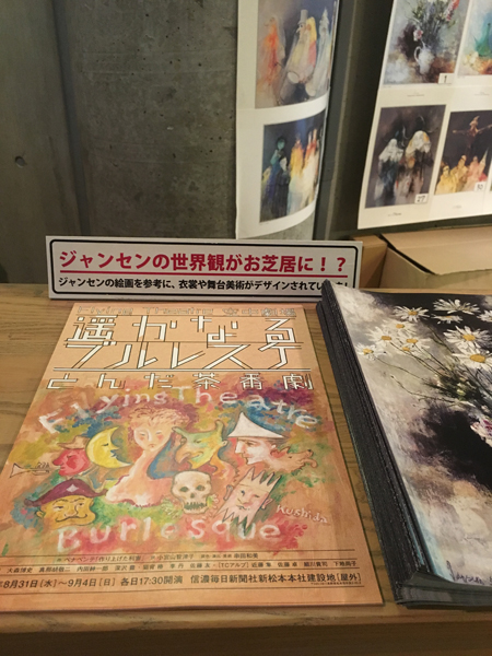 さて、芸術館の広報の方に「実は今回の作品はジャンセン作品を参考に舞台美術や衣装をデザインしているんです!」と伺ったので、頂いたPOPとともに館内各所へ掲示してみました。お出かけの際はぜひご覧&お持ちくださいね。