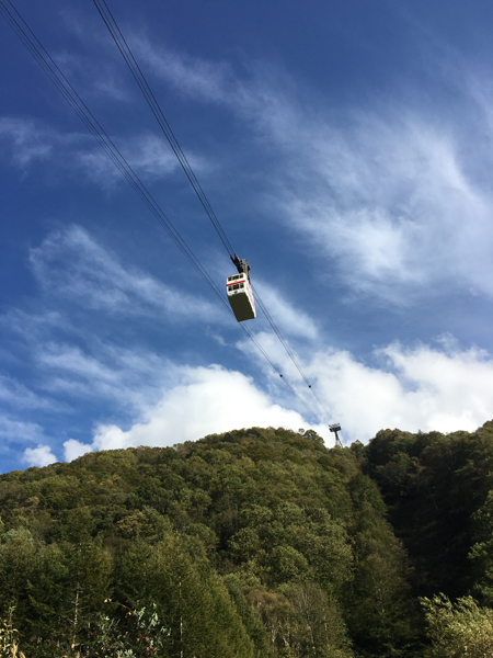 ロープウェイを使うと、空からの景色という視点でも楽しめます。普段は、見上げたり横から見たり..だけですよね?森に行くと木を見なくなってしまうけれど、山になるとなぜかちゃんと木が見えてくるのが不思議です。