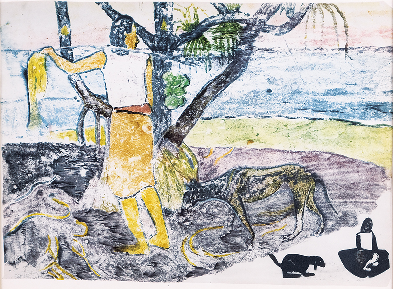 ゴーギャンの作品には人物のほかに、犬など動物がよく登場します。