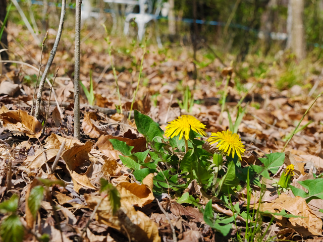 安曇野は芽吹きの季節、美術館の庭も花が咲き始めました。