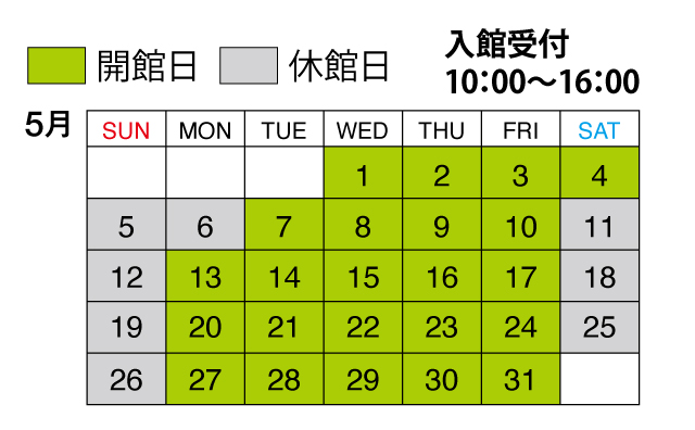 ※本年は年間カレンダーにそって休・開館しております。