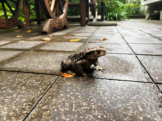 そして、女性スタッフがおそるおそる撮影した、大きなカエル。