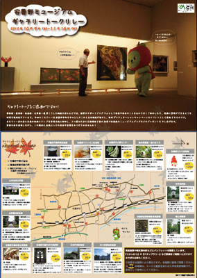 当企画は10月1日より実施されるJRのキャンペーン『信州DC』のなかで、安曇野市と市観光協会会員の文化施設14館が協力して行うイベントで、各館で行うギャラリートークをチラシに印刷された『じかんわり』に沿って受けられます。