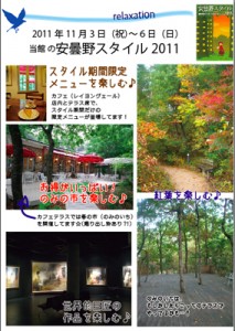 11月3日(祝)~6日(日)の安曇野は各地で安曇野スタイル2011というイベントを開催しています。この間、当館では隣接カフェと協力し『蚤の市』を開催しています。掘り出しモノ☆を探しにぜひお立ち寄りください。