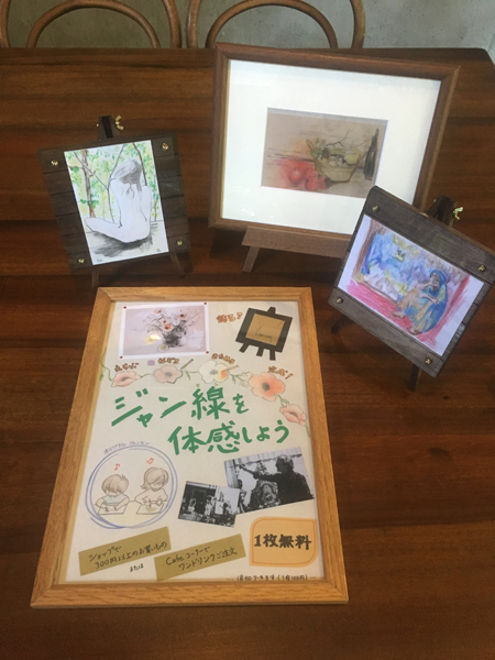 まずは50種類ほど用意したカードの中から描きたい作品を決め、画家の描いた線をなぞってデッサンを写し取り、自分の色を足していきます。画家の描いたままに複製画としていくも良し、ジャンセンとコラボして[オリジナルジャンセン]を描いてみるも良し!です。費用は『ミュージアムショップで300円以上お買い物いただく』または『カフェで1ドリンクを注文いただく』と1枚無料で描けますのでお気軽にご参加ください♪(当日受付で構いませんが、団体様に限り事前のご予約をお願いします。)