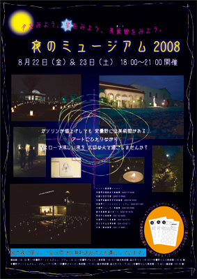 この夏で3年目を迎えました当館の美術館の夜の開館です。年を追う毎にスタッフ間でもワクワクムードが漂いますが、今年も数館で同時開催が決定しています。