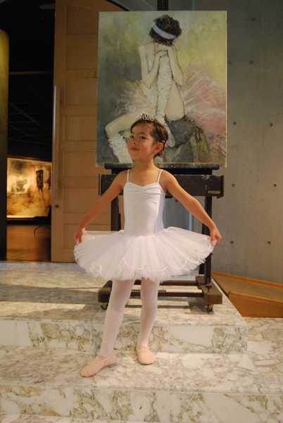 当イベントは身長80~130cmくらいの少女が対象で、作中のバレリーナ達のように本物のバレエ衣裳を着てジャンセンの描いたバレリーナ作品と一緒に記念撮影をします。撮影自体は館スタッフが行い、当日撮影したデータから1枚を選んでいただき専用台紙に記録、残りもCD-Rにてプレゼント。