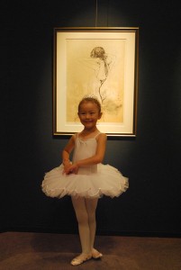 身長80~130cmくらいの少女が対象のイベントです。作中のバレリーナ達のように本物のバレエ衣裳を着てジャンセンの描いたバレリーナ作品と一緒に記念撮影をします。撮影自体は館スタッフが行い、当日撮影したデータから1枚を選んでいただいて専用台紙に記録、残りもCD-Rにてプレゼント。