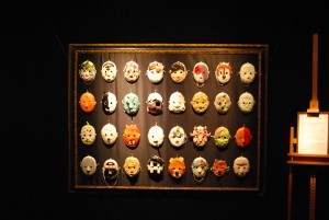これらの仮面は当地域にある公立小学校(安曇野市立穂高北小学校)5年2組の児童が《私ではない私》をテーマに制作した作品です。いずれも個性豊かな作品となっており、これは彼らの《もうひとりの私》です。子供たちにとって《もうひとりの私》とはこう在りたいという願望の現れなのかも知れず、自分の大切な人(や動物)が普段何気なく見せる表情なのかも知れず、もしくは心の底に秘めた自分だけが知っている顔なのかも知れません。皆さんの《もうひとりの私》はどんな顔をしていますか?