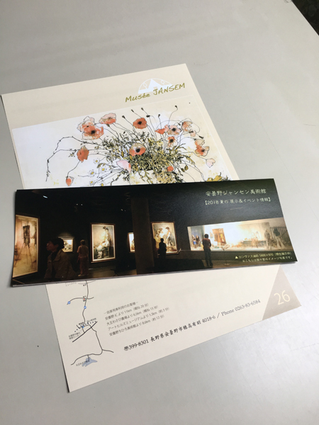 この夏のイベントと展覧会情報をまとめた横長の四折りパンフレットが出来ました。館内での設置とともに近隣の宿泊施設さんや美術館さんや飲食店さんなどに設置をお願いしています。どこかでお見かけになりました際はぜひお手にとってご覧ください!