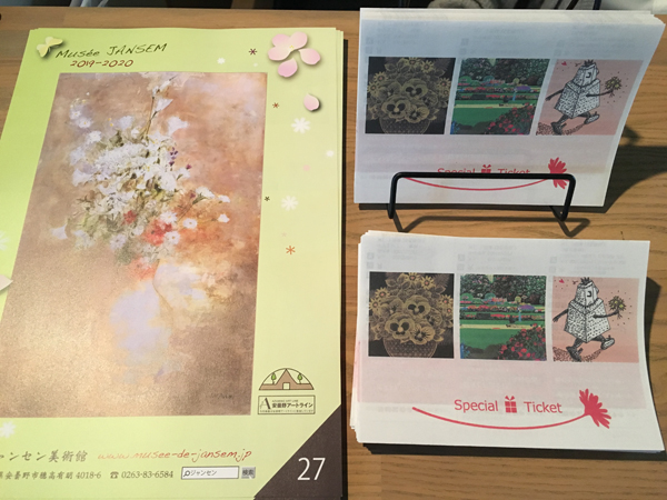 この春、新しいメンバーと3館連携企画を行います。スペシャルチケットをお持ちいただくと各施設で特別なサービスが受けられます。このチラシは該当3館のほか、安曇野の主要な美術館や図書館などにも設置があります。どこかで目にされた方はぜひお持ちください。